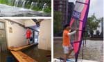 南京暴雨明城墙现“龙吐水” 道路被淹男子玩帆板学生搭桥进宿舍