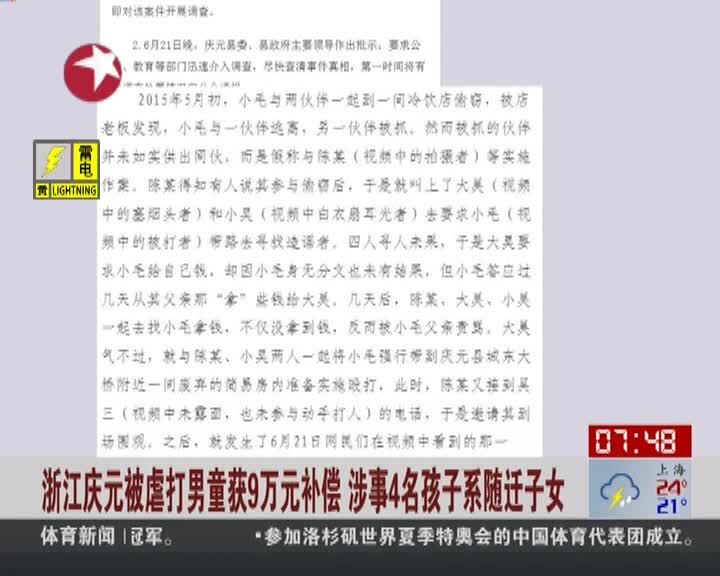 浙江庆元被虐打男童获9万元补偿 涉事4名孩子系随迁子女