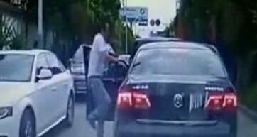 实拍司机多次超车未果 将对方逼停后怒踹数脚
