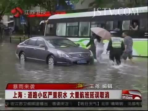 上海:道路小区严重积水 大量航班延误取消