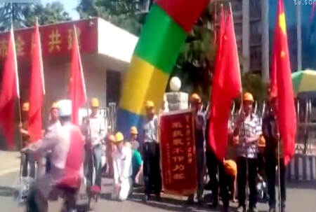 实拍农民工送“不作为”锦旗被拘状告警局
