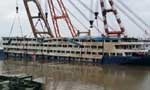 实拍“东方之星”号客轮船体被吊起 正缓慢出水