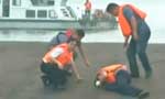 长江翻沉客轮:救援人员拿锤子敲击船体 有人敲打回应