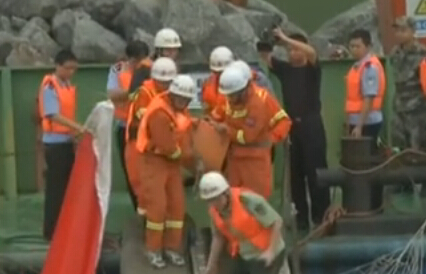 长江翻沉客船现场搭出救援通道 抬出一名老太太
