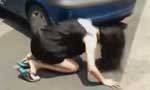 实拍女司机遇轻微剐蹭情绪失控 跪地磕头嚎啕大哭