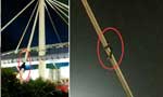 女粉丝爬6米高杆冒生命危险看明星演唱会