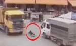 实拍:女子边打手机边过马路 被大车撞飞碾压