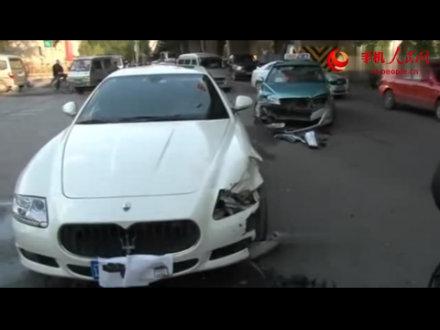 沈阳出租车撞玛莎拉蒂 女司机当街吓哭