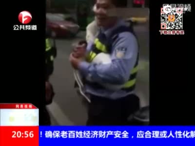 实拍女子违章与交警撕扯 自解衣扣称遭非礼