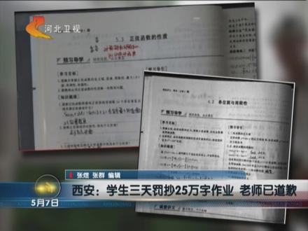 西安:学生三天被罚抄25万字作业 老师已道歉