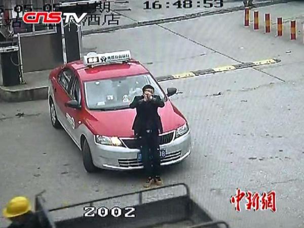 江西一男子为躲违章坐车头挡车牌 向监控作揖求“放一马”
