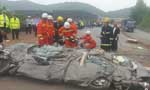 江西:小轿车被侧翻大货车碾成饼 车内6人遇难