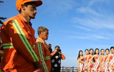 环球小姐身着比基尼为环卫工献花