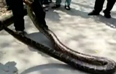 2米长巨蟒在公园晒太阳 农夫徒手擒蟒