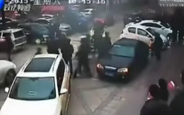 监拍豪车撞飞保安 10多人聚众狂殴多名保安