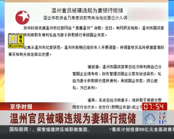 温州官员被曝违规为妻银行揽储