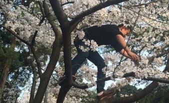 十万游客涌入武大赏花爬树造“樱花雨”