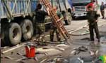 万斤鲶鱼散落一地 公路成鱼池