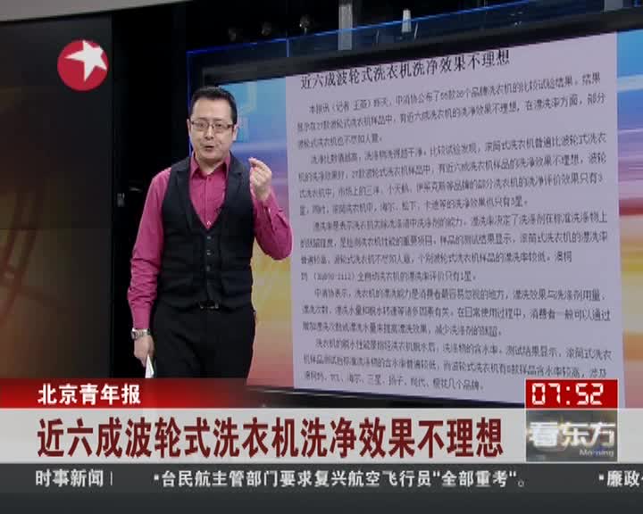 名牌洗衣机被曝洗不净衣服 松下海尔等上黑榜