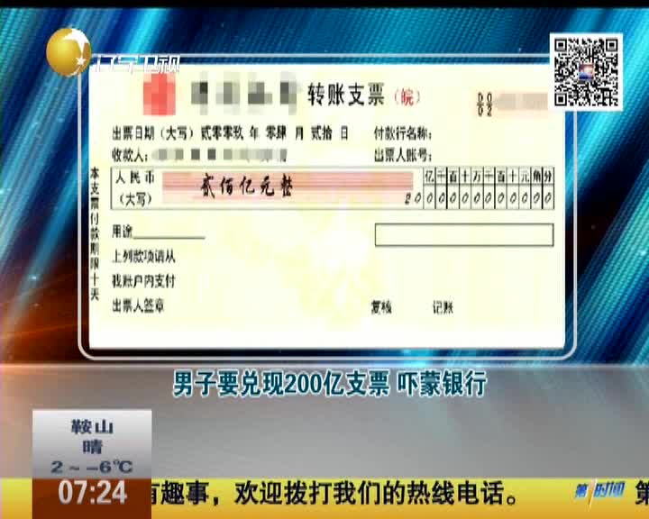 男子要兑现200亿支票 吓蒙银行
