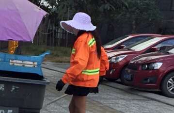 时尚环卫姐穿丝袜高跟上阵 系帮同事代班