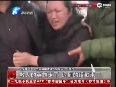 现场:千人送别救人溺亡大学生 被救者下跪道歉