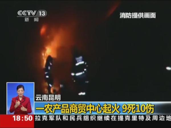 云南昆明一农产品商贸中心起火 9死10伤