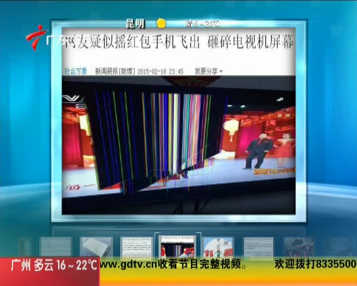 网友疑似摇红包手机飞出 砸碎电视机屏幕