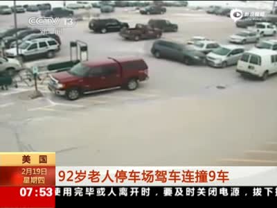 监控:92岁老人停车场驾车 脚卡油门连撞9车