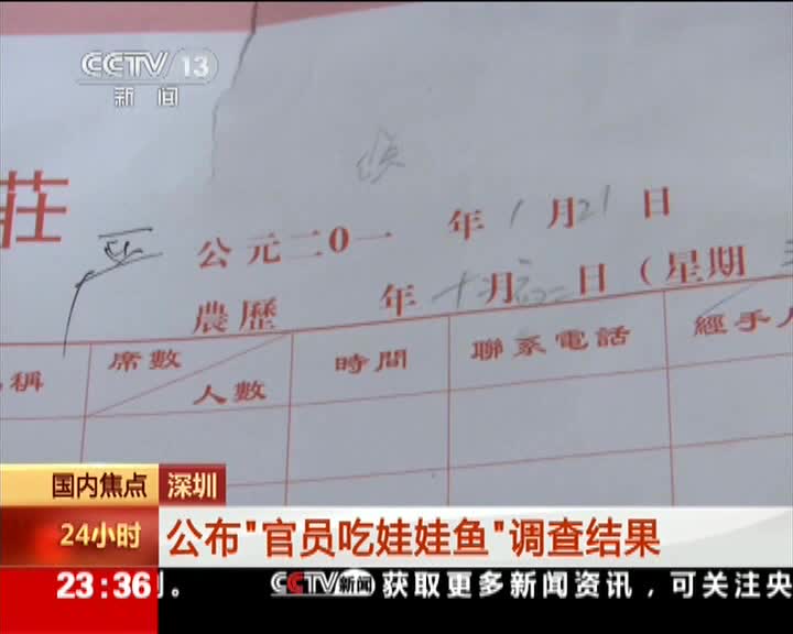 深圳公布“官员吃娃娃鱼”调查结果:没有公款消费