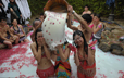 广东数十对情侣同泡牛奶浴 上演“喝奶大比拼”