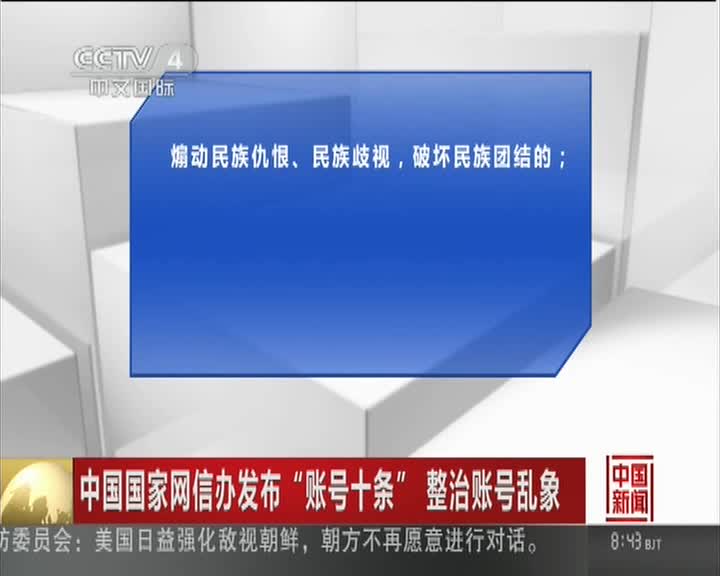 中国国家网信办发布“账号十条”整治账号乱象
