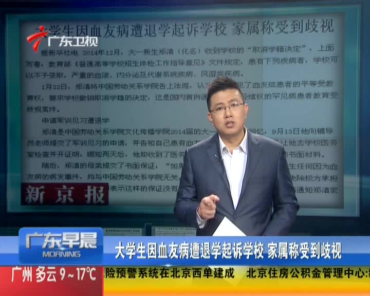 大学生因血友病遭退学起诉学校 家属称受到歧视