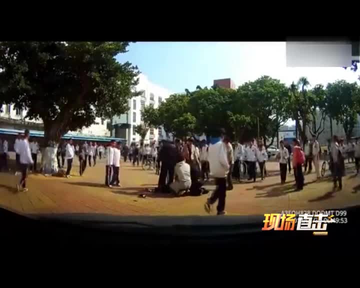 广西男子持刀闯中学校园追砍学生 被老师飞车撞倒
