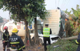 广东一泥头车撞上警车 警车完全变形被压成铁饼