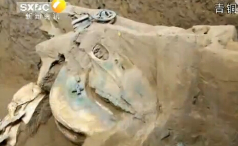 实拍陕北高原现周代车马坑 两匹马佩戴青铜马胄