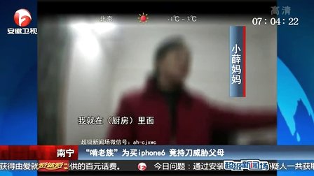 南宁:“啃老族”为买iPhone6 竟持刀威胁父母