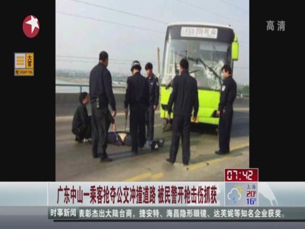 广东一乘客抢夺公交冲撞道路 被民警击伤抓获