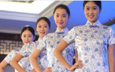 女大学生志愿者穿青花瓷纹紧身旗袍亮相互联网大会