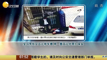宝马男拒交5元停车费 用一叠百元钞票打保安