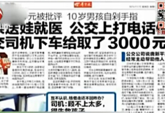 陕西10岁男孩偷拿家里100块遭批评 自剁手指