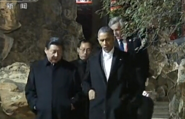 现场—习近平奥巴马瀛台散步中南海茶叙