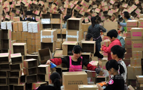 实拍“双十一”网购潮后 各地快递仓库堆积如山