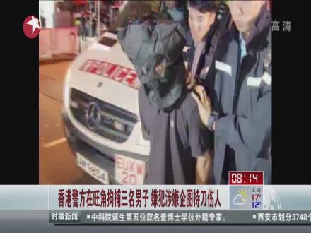 香港警方在旺角拘捕三名男子嫌犯涉嫌企图持刀伤人