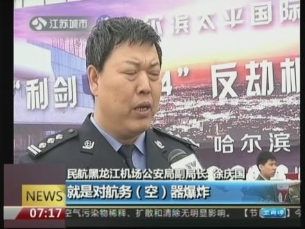 哈尔滨机场举行“利剑2014”反劫机综合演练