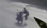 监拍小伙骑摩托车玩杂耍玩砸倒地摔死