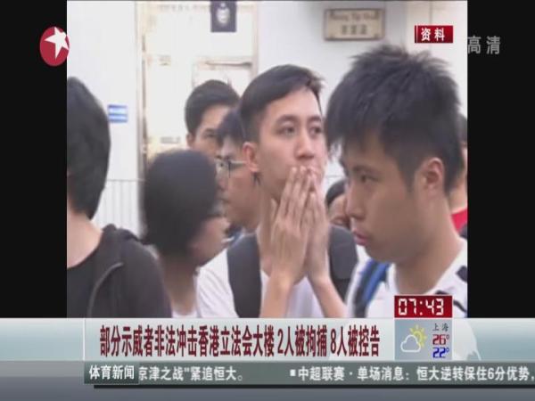 部分示威者非法冲击香港立法会大楼 2人被拘