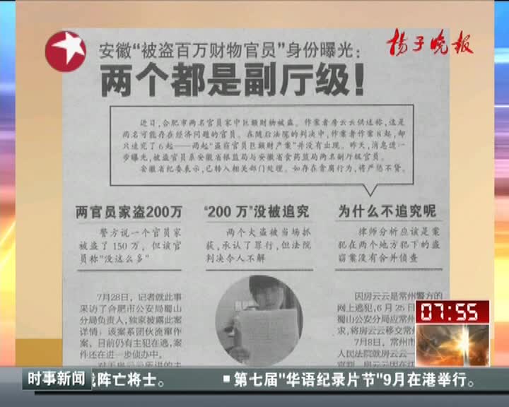 安徽“被盗百万财物官员”身份曝光:两个都是副厅级