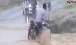 摩托男骑车过漫水桥不慎落水瞬间被冲走