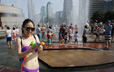 上海高温天气举办水枪大赛 比基尼美女湿身大战